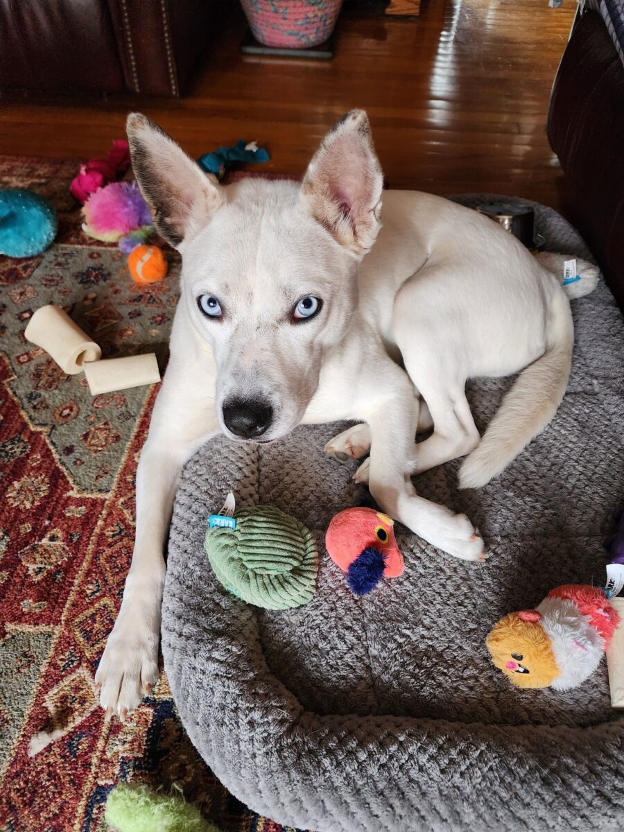 Meet Angel! More pictures and video below or to come! Angel is a 4 1/2-year-old female (approx. DOB tbd), 40 lbs., vetted, and is or will be spayed and micro-chipped. Angel’s owner, unfortunately, had to surrender her for medical considerations; she took a bad fall and has a very long recovery to rehabilitate after surgery. Angel is good with other dogs, maybe cats (all cat & dog relationships are different), is shy and can be fearful in new situations (but treats help and another dog would build her confidence), has medium energy, is potty-trained, and rarely barks. Angel is very sweet and loves to be outdoors! She would be happiest in a home with someone who will provide her exercise and emotional enrichment, who has another dog-friendly dog! If you are interested in adopting Angel, please fill out an Application.